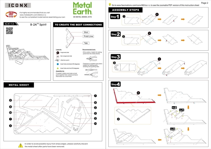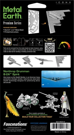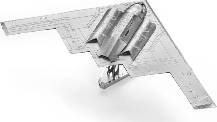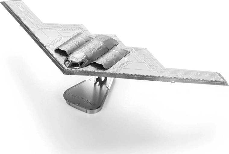 Fedezze fel a fémmel végzett precíz munka örömét, és alakítsa a lapos acéllemezeket lenyűgöző 3D-s B–2A Spirit bombázóvá. A METAL EARTH ICONX sorozat nagyobb méretarányt, részletesebb kidolgozást és elegáns felületet kínál finom lézergravírozással, amely hűen visszaadja a legendás lopakodó repülőgép paneljeit és vonalait.