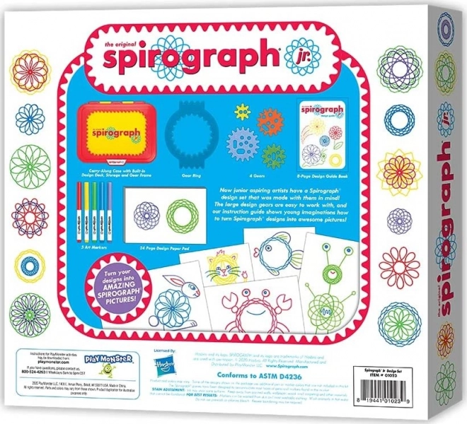 A Spirograph Junior a nagy elemekkel és az egyszerű használattal megkönnyíti a kicsik számára a gyönyörű minták készítését.