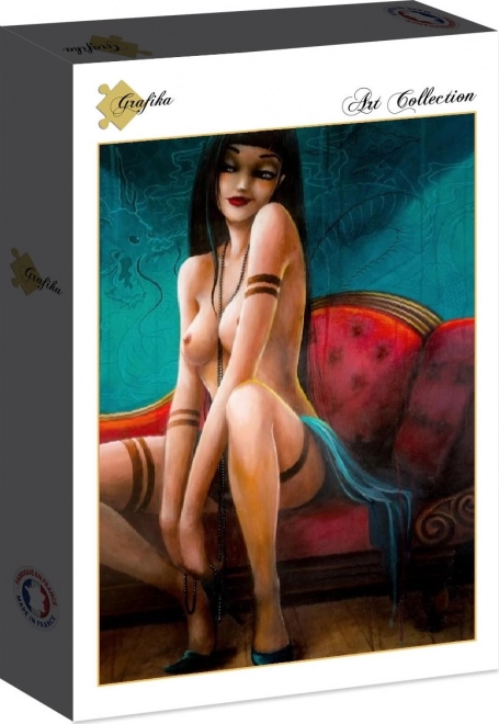 Fedezze fel a műalkotás szépségét és részletgazdagságát a Grafika márka 'Miss Dragon' kirakójával. Ez az 1000 darabos puzzle az 'Erotika és érzékiség' kollekció része, és felnőtt kirakórajongóknak készült. A 69 x 47,8 cm-es méretű kirakó a francia művésznő, Misstigri alkotását jeleníti meg, amelyet minőségi kartonra precízen nyomtattak.