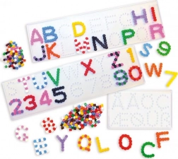 Ábécés vasalható gyöngyalátétek, betűk és számok motívumaival, ideális segítők a kreatív alkotáshoz. Az átlátszó kialakítás megkönnyíti a minták elhelyezését.