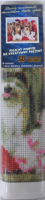 Fedezze fel a gyémántmozaik alkotás pihentető világát a Kutyusok rózsák között motívummal. A készlet mindent tartalmaz, ideális a kikapcsolódáshoz, a kreatív szórakozáshoz és a közös alkotáshoz a családdal. A könnyű kőfelhelyezésnek köszönhetően nincs szükség előzetes tapasztalatra, a kész 30 × 40 cm-es kép pedig egyszerűen keretezhető.