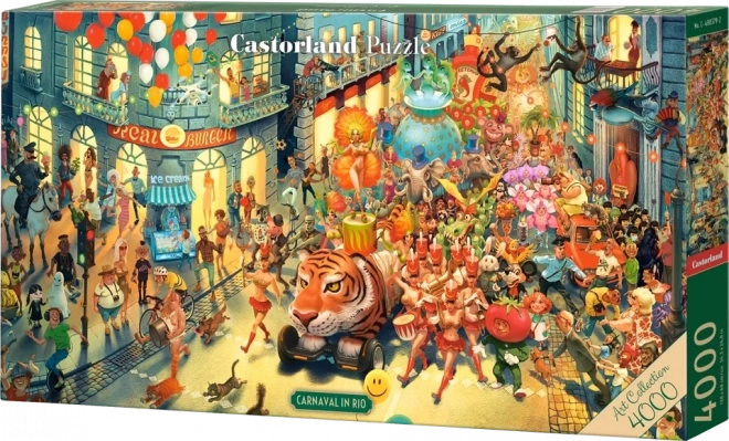 Fedezze fel a szamba és álarcok elbűvölő világát a prémium 4000 darabos Riói karnevál kirakóval Waldemar Kazak illusztrációja alapján. Rejtélyes alakok, rejtett szimbólumok és eredeti jelmezek várják, amelyek együtt egy egyedi, szatirikus jelenetet alkotnak. A könnyebb kirakáshoz a csomag tartalmaz egy kiegészítő illusztrációs mintát is.