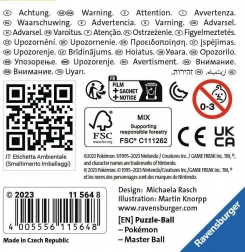 Ravensburger 3D Puzzle Pokémon Master Ball lenyűgöző élmény kicsiknek és nagyoknak, akik kedvelik a Pokémonokat. A fantasztikus dizájn, amely jellemző a Pokémon világára, ez az 54 darabos puzzle szórakozást és fantáziadús fejlesztést nyújt a 6 éves kortól gyerekeknek.
