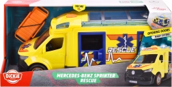Ez a Mercedes-Benz Sprinter a Dickie Toys-tól valódi mentős élményt nyújt fények és hangok révén. A jármű vezető- és utasajtói, oldalsó és hátsó ajtói, valamint átlátszó teteje is nyitható, így hozzáférhetünk a részletes belső térhez.