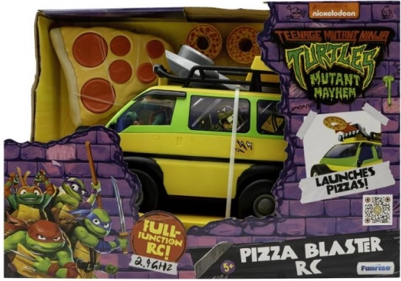 Az RC autó Pizza Blaster 2,4 GHz technológiával van felszerelve a könnyű és zavartalan vezetés érdekében. Ezzel a járművel akár 6 habpizzát is kilőhetsz ellenségeidre, és igazi Teknőcök Ninja stílusú csatát élvezhetsz! A pizzadarab alakú vicces távirányító extra adag szórakozást és egyszerűséget kölcsönöz a vezérléshez.