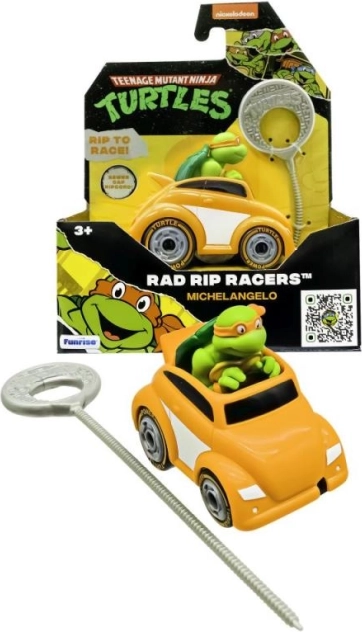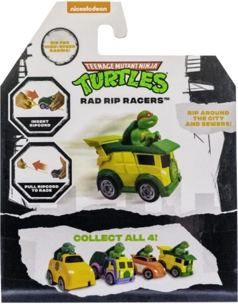 A Teenage Mutant Ninja Turtles Rad Rip Racers sorozat autói gyors versenyzésre készültek. Helyezze be a felhúzós kötelet, húzza meg, és figyelje, ahogy a Nindzsa Teknőcök elindulnak a pályán!
