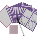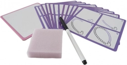 - Minden egy csomagban – 12 kártya, letörölhető filc és szivacs.