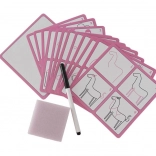 - 12 képes kártya, speciális letörölhető filc, szivacs