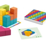 Olyan okos és igényesen kidolgozott játékot keres, amely szórakoztat, miközben fejleszti a logikát? A DJeco Cubissimo ötvözi a fa kivitel tartósságát, az élénk színeket és az átgondolt feladatokat a könnyűtől a nehezebbig. Állítsa be a kezdő pozíciót a feladatkártya szerint, majd a megmaradt elemek segítségével formálja a kockát a kívánt alakra. Minden megoldás fejleszti a térbeli gondolkodást, a logikai következtetést és a finommotorikát.