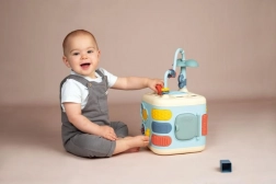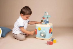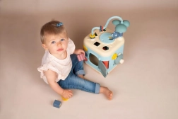 A LITTLE SMOBY multifunkciós kocka órákon át tartó okos szórakozást nyújt a gyerekeknek. A változatos tevékenységeknek köszönhetően – a formaberakótól, a forgó kerekeken és mozgó elemeken át a gyöngylabirintusig – természetes módon fejleszti a szem–kéz koordinációt, a képzeletet és a koncentrációt. A finom pasztellszínek kellemesek a szemnek és nem zavaróak.