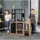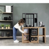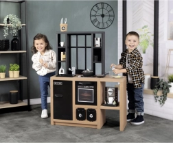 Az ipari stílusú SMOBY Loft konyha remekül illik a modern enteriőrbe, és biztonságos teret kínál a valódi főzés utánzására. A forgatható gombok, nyitható ajtók és praktikus rekeszek támogatják a szerepjátékot, az önállóságot és a társas interakciót.