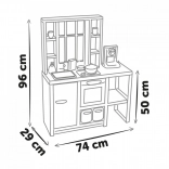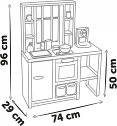 Helytakarékos kialakítás 74 × 29 × 96 cm méretben (a munkalap magassága 50 cm), 3 éves kortól ideális. Fejleszti a kreativitást, a felelősségtudatot és a mindennapi készségeket.