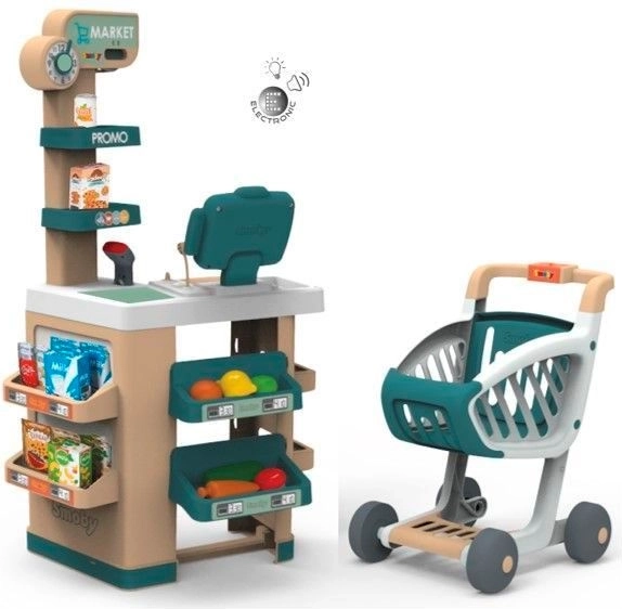 Biztosítson gyermekének órákon át tartó szórakozást ezzel a valósághű gyerek szupermarkettel. Ez a készlet elektronikus pénztárgéppel van felszerelve, amely hang- és fényhatásokat kínál, ezáltal növelve a vásárlói élményt. Az integrált számítási funkcióval a gyerekek eljátszhatják a pénztáros szerepét.