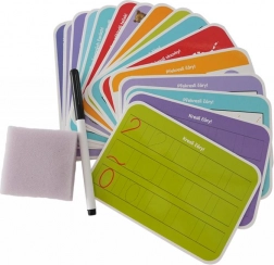 A speciális filcnek köszönhetően, amely a mellékelt szivaccsal könnyen letörölhető, a kártyák többször is használhatók. Így a tanulás stresszmentesen, ismétléssel és a fejlődés örömével történik.