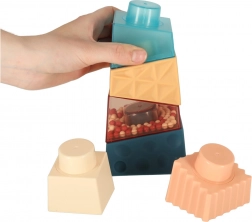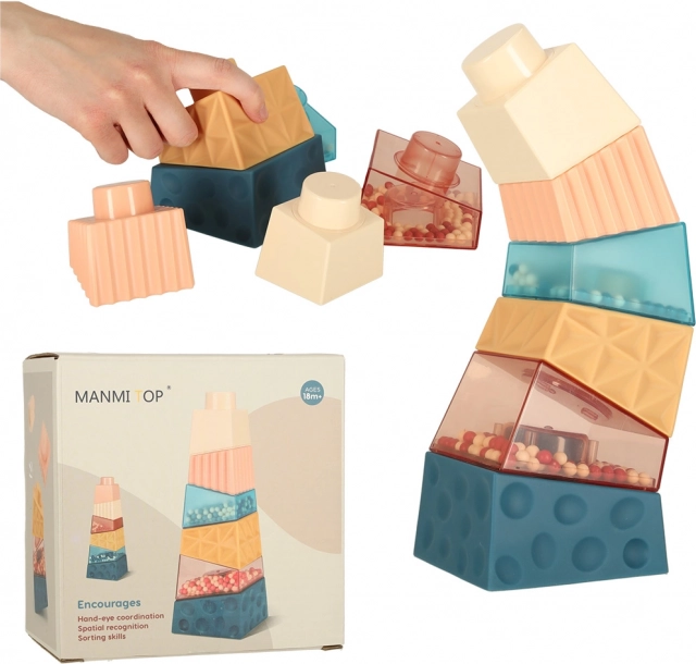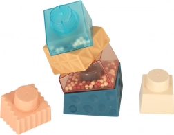 Színes és texturált kockák, beleértve azokat is, amelyek golyókat tartalmaznak, serkentik a gyermek látását és tapintását.