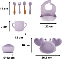 Ez a sokoldalú készlet megkönnyíti minden étkezést – a rekeszes rák alakú tányér átláthatóvá teszi az adagokat, a tapadókorongos tál megelőzi a felborulást, a kétfülű pohár pedig támogatja az önálló ivást. A mély zsebes előke felfogja a morzsákat és a kiömléseket, így az étkezés utáni takarítás gyorsabb.