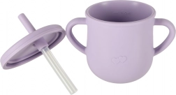 Két füllel, két fedéllel és szívószállal ellátott gyakorlópohár segíti a gyerekeket az önálló ivás elsajátításában; a belső skálák megkönnyítik az adagolást.