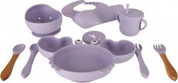 Minden elem simára kidolgozott, biztonságos éllel és kis kezekhez tervezett ergonómiával készül. A szilikon BPA-mentes, élelmiszerbarát és nagyon könnyen tisztítható – elegendő enyhe szerrel leöblíteni és megszárítani. Ideális választás 6 hónapos kortól az önálló étkezés gyakorlásához.