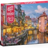 Fedezze fel Annecy francia városának varázsát esti fényben. Ez az 1000 darabos puzzle részletgazdag, színben kiegyensúlyozott motívumot kínál, amely örömet szerez kezdőknek és tapasztalt kirakózóknak egyaránt. Kirakva kb. 70 × 50 cm, így remekül alkalmas keretezésre és kiállításra.