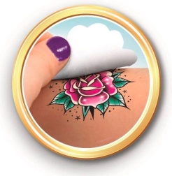 Készíts egyedi ideiglenes tetoválásokat, mint egy igazi művész. A Crazy Chic készlet ötvözi a bélyegzést, a szabadkézi festést és az öntapadós sablonok használatát. A négy cserélhető színes heggyel ellátott testfilcnek és a testfestékeknek köszönhetően könnyedén varázsolhatsz finom vonalakat, kitöltött felületeket és látványos részleteket.