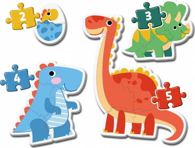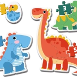 A 2 éves kortól kezdve a gyerekek élvezhetik az első puzzle-k összeállítását dinoszaurusz témával. Minden puzzle különböző számú darabot tartalmaz - 2, 3, 4 és 5, ami lehetővé teszi a fokozatos fejlődést és új készségek elsajátítását.