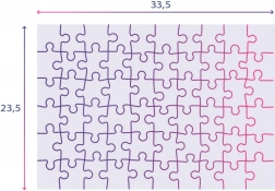 Az összerakott puzzle méretei 33,5 x 23,5 cm, amely ideális gyermeki játékhoz vagy dekorációként.