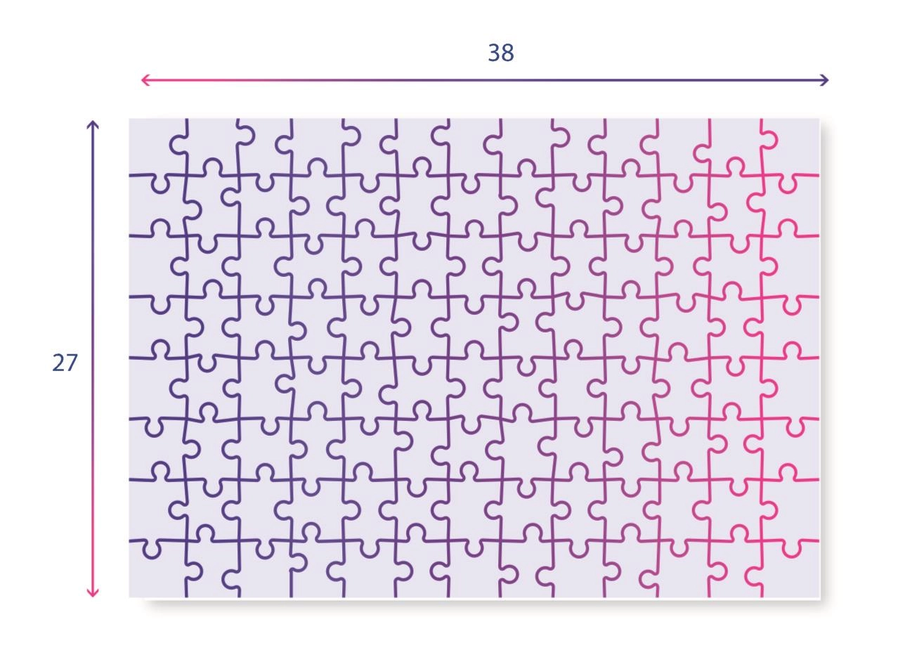 Az összeállított puzzle mérete kb. 38 × 27 cm