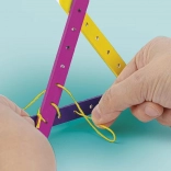 - Sós tészta; munkaeszköz cserélhető hegyekkel; temperafestékek és ecset; pálcikák; zsinór; karton dekorációk; képes útmutató
