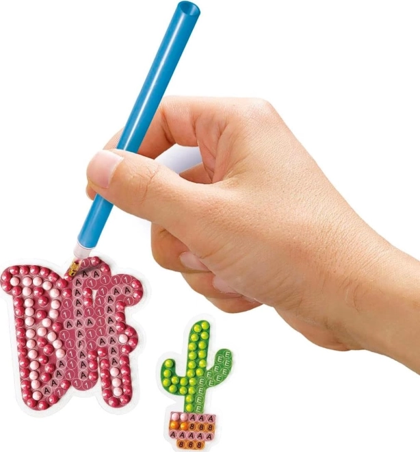 Elkészítés menete: Válassz egy öntapadó felületű matricát, szórd a gyémántokat a tálkába, tölts viaszt a toll hegyébe, és a színkód vagy a saját elképzelésed szerint helyezd fel a kövecskéket.