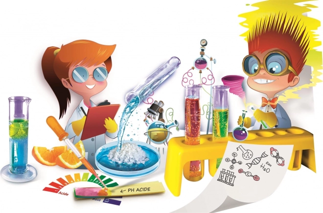 Több mint 170 érdekes és BIZTONSÁGOS kísérlet, amely szórakoztat téged és barátaidat! Az „Az én kémiám” kísérleti készlet modern, teljesen felszerelt gyermeklaboratórium, amely játékos formában vezeti be a kémiát. Ezzel a készlettel a gyerekek különféle kémiai reakciókat próbálhatnak ki – mindezt számos hasznos eszköznek köszönhetően teljesen biztonságosan. A készlet tartalma: védőszemüveg, mérőpoharak fedéllel, kémcsövek dugóval, kémcsőkefe, keverőpálca, pipetták, atomminták, fecskendők, mérőhenger, tölcsér, kémcsőtartó állvány, spatulák, műanyag csövek, szűrőpapír, csipesz, buborékfújó, vegyszerek (borkősav, nátrium-karbonát, univerzális indikátorpapír) és illusztrált útmutató. A készlet nem tartalmaz minden, a kísérletekhez szükséges anyagot, illetve nem tartalmazza azokat a hozzávalókat sem, amelyek általában a háztartásokban megtalálhatók.