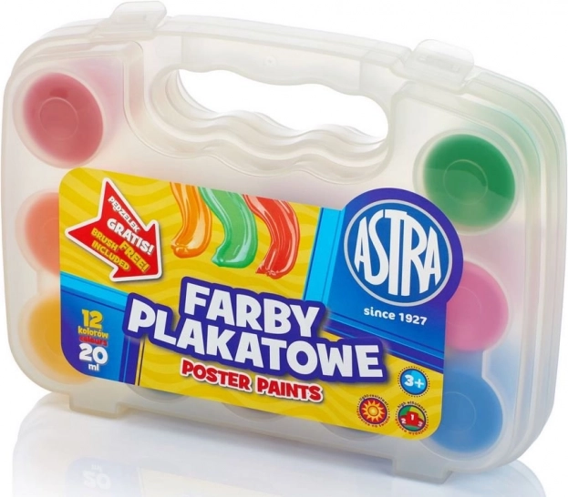 Az ASTRA temperafestékek telt fedést biztosítanak, könnyen keverhetők és gyorsan száradnak. Minden szín tartós műanyag tégelyben található csavaros kupakkal, amely megakadályozza a kiszáradást és megkönnyíti a többszöri használatot. A praktikus műanyag koffertáskának köszönhetően a teljes készlet biztonságosan szállítható és tárolható.
