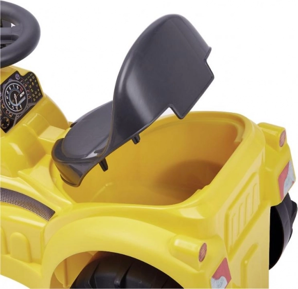 A markoló formájú gyerek bébitaxi örömet szerez a kis sofőröknek működő elülső kanállal, amelyet két karral lehet irányítani, csúszásmentes kormánnyal (kormányzás nélkül), masszív műanyag kerekekkel és praktikus tárolóhellyel az ülés alatt. A kompakt 66 × 32,5 × 28 cm-es méretek ideálisak lakásba és kertbe egyaránt.