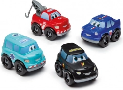 - Teljes készlet 4 kisautóval – autómentő, tűzoltó, rendőrség és „rabló” autó