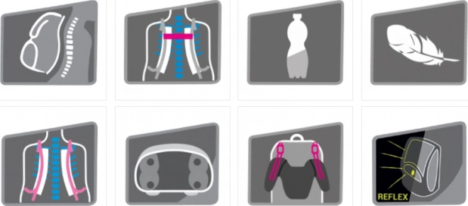 A hátizsák mindössze 970 g, és úgy tervezték, hogy a könnyített szerkezetnek és a légáteresztő párnázásnak köszönhetően maximális kényelmet biztosítson.