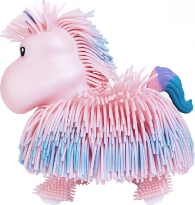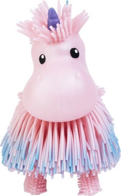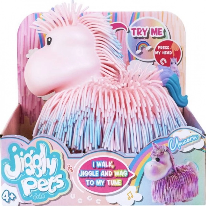 Aranyos, interaktív Jiggly Pets unikornis, amely a fején lévő gomb megnyomására életre kel: sétál, bólogat, ringatja a testét és csóválja a farkát, valamint vidám dallamokat játszik. Puha, rojtos felülete tapintásra csábít, és az elemek a csomag részét képezik (próbaüzemhez).