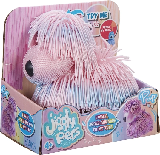 Ismerd meg a bájos JIGGLY PETS társat, aki egy gombnyomásra táncolni kezd és ugat! Ez a gyöngyházfényű, rózsaszín-kék kutyus tud ugatni, járni, bólintani a fejével, és a dallamok ritmusára rázni a testét és a farkát. A csomagban próbatelepek is találhatók, így a móka azonnal kezdődhet.