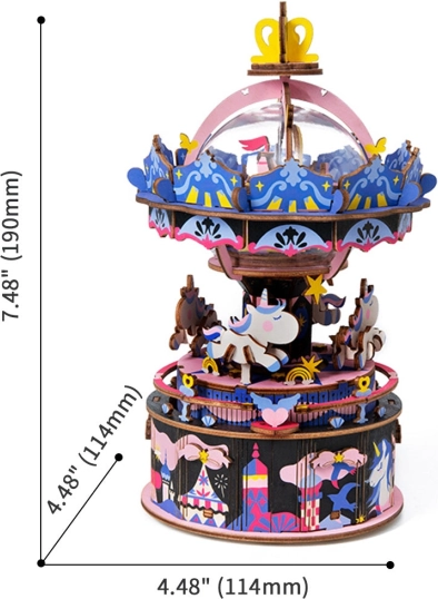 Robotime 3D összerakható Vidám körhinta egyedülálló körhintamodell, ami örömet okoz minden zenélőszekrény-rajongónak. Szerelje össze, és élvezze a jól ismert dallamot a mozgó részletekkel együtt.