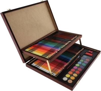 Kreatív művészeti készlet tökéletes megoldás mindazoknak, akik szeretnek alkotni. A praktikus fa toknak köszönhetően minden segédeszköz áttekinthetően el van rendezve és mindig használatra kész.