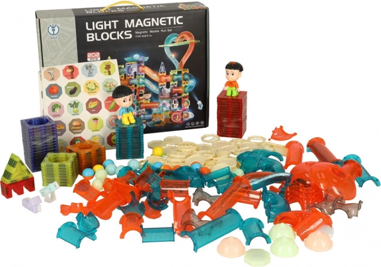 A 3 éves kortól ajánlott, nagyszabású mágneses építőkészlet segítségével lenyűgöző golyópályát, valamint 2D/3D építményeket lehet megalkotni. Az áttetsző elemek mágnesekkel kapcsolódnak, és egyes elemek világítanak – beleértve a golyókat is, amelyek mozgás közben felragyognak, és csodás fényshow-t teremtenek. A készlet fejleszti a finommotorikát, a térbeli képzelőerőt és a logikus gondolkodást, valamint ideális a közös családi szórakozáshoz.