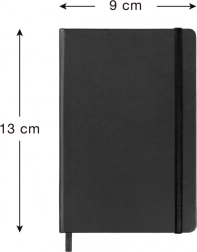 A masszív borító védi a tartalmat a mindennapos használat során, az elasztikus gumipánt pedig biztonságosan zárva tartja a noteszt. A hátsó zseb a névjegyeknek és apróságoknak további rendezettséget és kényelmet ad a rendszerezéshez.