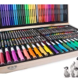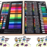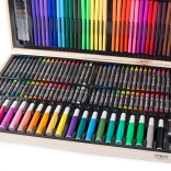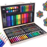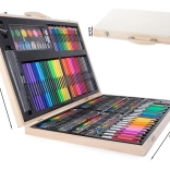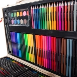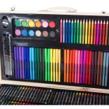 Teljes kreatív készlet elegáns fa bőröndben gyerekeknek és felnőtteknek, akár 180 darabbal rajzoláshoz és festéshez. A praktikus, fogantyús bőröndnek köszönhetően minden áttekinthetően egy helyen van és könnyen hordozható. Ideális a kreativitás fejlesztésére, különböző technikák gyakorlására és végtelen alkotáshoz otthon, az iskolában vagy útközben.