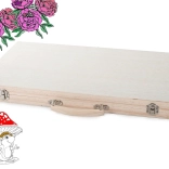 Masszív fa tok fémcsatokkal és fogantyúval, amely védi a tartalmat, megkönnyíti a hordozást, és remekül mutat az asztalon vagy a gyerekszobában.