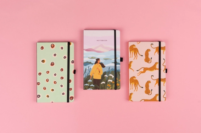 A tájkép motívummal díszített dizájnos borító különleges karaktert ad jegyzeteinek, miközben a masszív kötés és a rugalmas gumipánt megbízhatóan védi a tartalmat a mindennapi hordozás során.