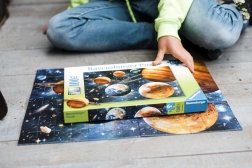 Lépjetek be a gyerekekkel a bolygók, csillagok és rakéták lenyűgöző világába a RAVENSBURGER Űr puzzléval. A precíz vágásnak és a tartós kartonnak köszönhetően az összerakás gördülékeny és szórakoztató, miközben a valósághű motívum támogatja a kíváncsiságot és a játékos tanulást.