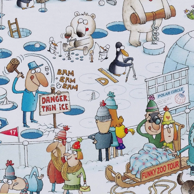 HEYE Puzzle Őrült Állatkert: Sarkvidéki kiállítás nagyszerű lehetőséget kínál saját állatvilág létrehozására otthon, ezer darabból. Marino Degano elismert karikaturista által tervezett nagyszerű szórakozás, amely garantáltan mosolyt csal az arcra, miközben a darabokat keresi.