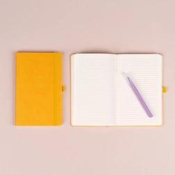 A NOTIQUE jegyzetfüzet élénk sárga színben ötvözi az elegáns megjelenést és a funkcionalitást. A masszív borítók és a lekerekített sarkok kiválóan állják a mindennapos használatot irodában, iskolában és utazás közben is. A praktikus elasztikus pánt egyben tartja a lapokat, az oldalsó tollhurok pedig gondoskodik róla, hogy a toll mindig kéznél legyen.