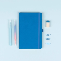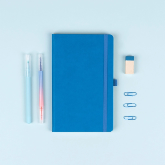 Praktikus és könnyű kék notesz érdesebb felületű borítóval, ideális jegyzeteléshez, tervezéshez és napi feljegyzésekhez. A kemény könyvkötésnek és a rugalmas pántnak köszönhetően a tartalom mindig védett, míg a tollhurok és a textil könyvjelző növeli a használati kényelmet.