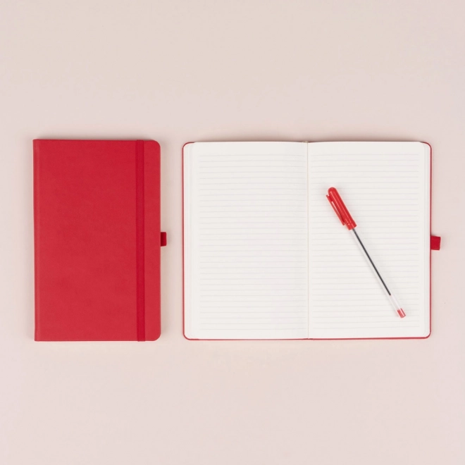 Elegáns, vonalas jegyzetfüzet klasszikus piros színben, kemény könyvkötéssel, rugalmas gumipánttal, tolltartó hurokkal és textil könyvjelzővel. A durvább textúrájú felület ideális logó préseléséhez, a 6 mm-es vonalak a minőségi sárga papíron kényelmes írást biztosítanak otthon, irodában és útközben is.