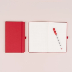 A praktikus részleteknek köszönhetően minden kéznél lesz: az elasztikus gumipánt védi a lapokat, a textil könyvjelző megkönnyíti a tájékozódást, a tollhurok pedig gondoskodik róla, hogy az írószer mindig készen álljon. A felület durvább struktúrája alkalmas vállalati logó prégelésére, így a jegyzetfüzet vonzó promóciós és ajándéktárgy is.