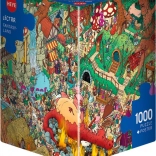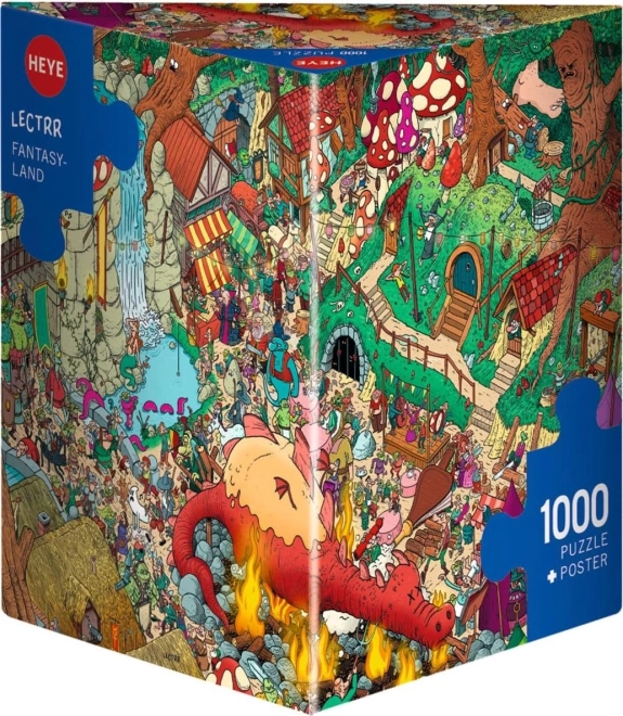 Fedezze fel a fantázia világát a Heye Puzzle Fantázia Földje 1000 darabos kirakóval, amely egyedi háromszög alakú dobozban van csomagolva.